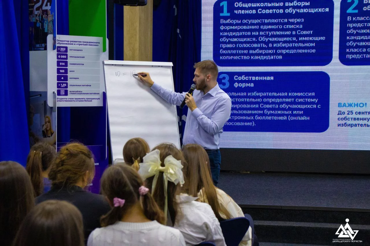 На мероприятие были приглашены председатели и секретари Школьных избирательных комиссий всех школ города. Для них была подготовлена образовательная программа о том, как организовать процесс подготовки и проведения выборов председателя и членов Совета обучающихся.
